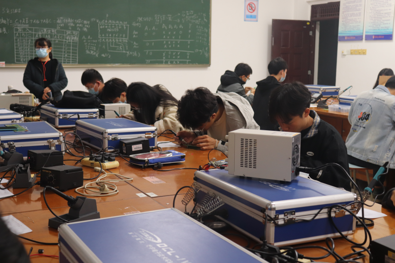 12月8日晚,我系科技活动月电子焊接技能竞赛于4204和4202教室火热举行,指导老师张明与吴剑园在竞赛现场观摩指导,我系学子积极参与其中。