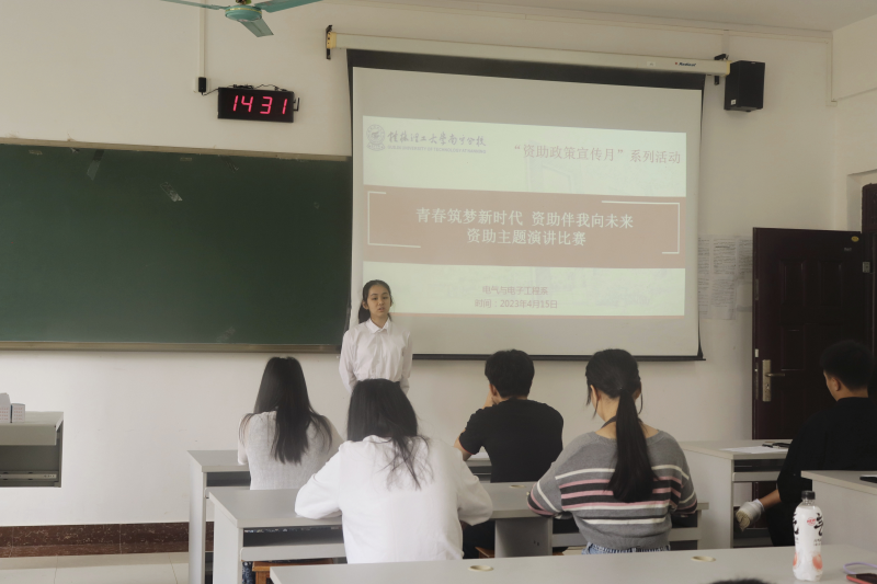 为进一步宣传资助政策,激发家庭经济困难学子的立志成才之心,4月15日下午,我系于4304教室举办了以“青春筑梦新时代,资时伴我向未来”为主题的资助演讲比赛。此次比赛共有10位选手参赛,我系辅导员张鲜月老师和部分学生干部担任评委。