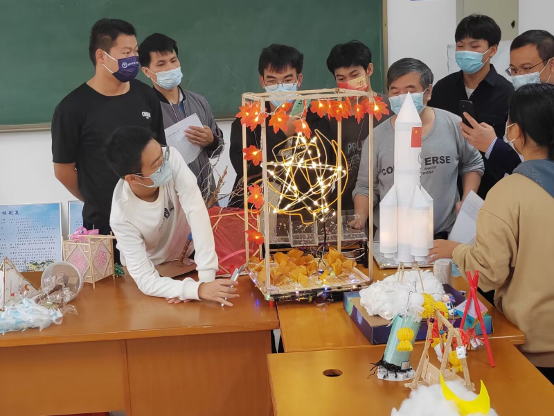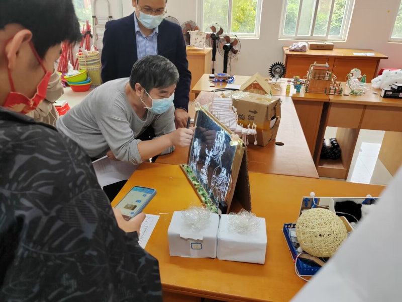 在彩灯作品评比过程中,彩灯设计制作参赛者和参赛小组认真对作品的原理和用途进行了解答。此次竞赛让同学们更好地将电子信息知识和对彩灯设计的浓厚兴趣有机结合,展现出同学们在彩灯作品方面的创新性,创造出创新型、应用型的彩灯作品。