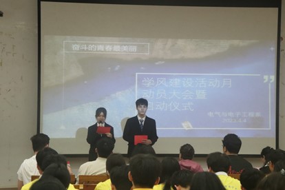 为进一步加强系部学风建设,培育优良学风,优化育人环境,我系于4月4日晚在启智楼8108举行学风建设活动月启动仪式。我系辅导员、五大团体成员、在校班级班委参加仪式。