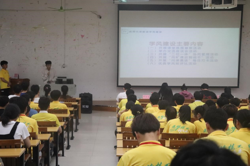 活动伊始,邢家豪老师对学风建设月活动主要内容进行一一讲解;随后,学生代表丁云朋从“树立目标”、“规划时间”、“积极实践”、“拓展视野”几个方面分享了自己的学习经验。最后,学生会团总支副书记滕一阳作出总动员,要求学生骨干和各班班委以身作则,为营造“优秀班风”、“优秀舍风”、“优秀考风”、“优秀学风”发挥榜样引领作用。