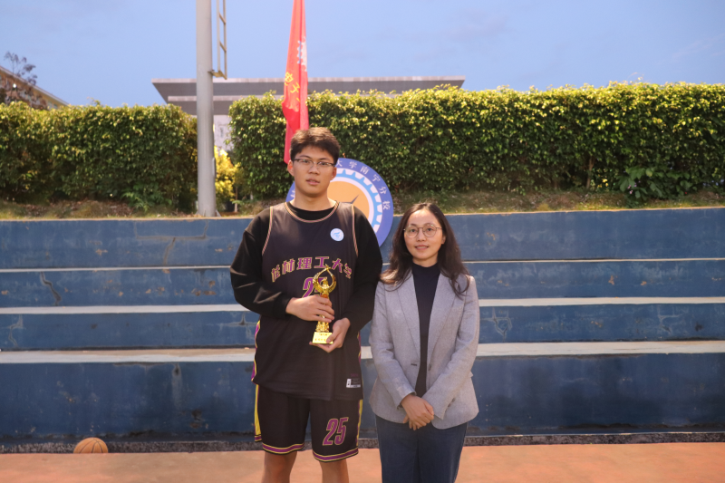 当晚的冠亚军争夺赛上,机电队与建智队之间展开了激烈的角逐,运动员们用娴熟的技术创造出一个个扣人心弦的投球瞬间,赢得了一声声喝彩。伴随着裁判的吹哨声响起,“电气杯”篮球赛正式落下帷幕。本次“电气杯”篮球赛冠军队伍为机电队、亚军队伍为建智队、季军队伍为建智本队。蒋玉望、聂大钧获 MVP 称号。系主任周红锴、副主任李高宇、系党总支副书记唐淑珍老师、团总支书记梁喻深为获奖队伍及选手颁奖。