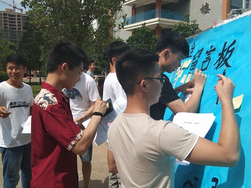 6月27日,是桂林理工大学英国上市公司36516级毕业生毕业的日子,我系团总支在玉成楼下举办了毕业季留言墙活动。我系团总支成员号召16级的毕业生参加此次活动。