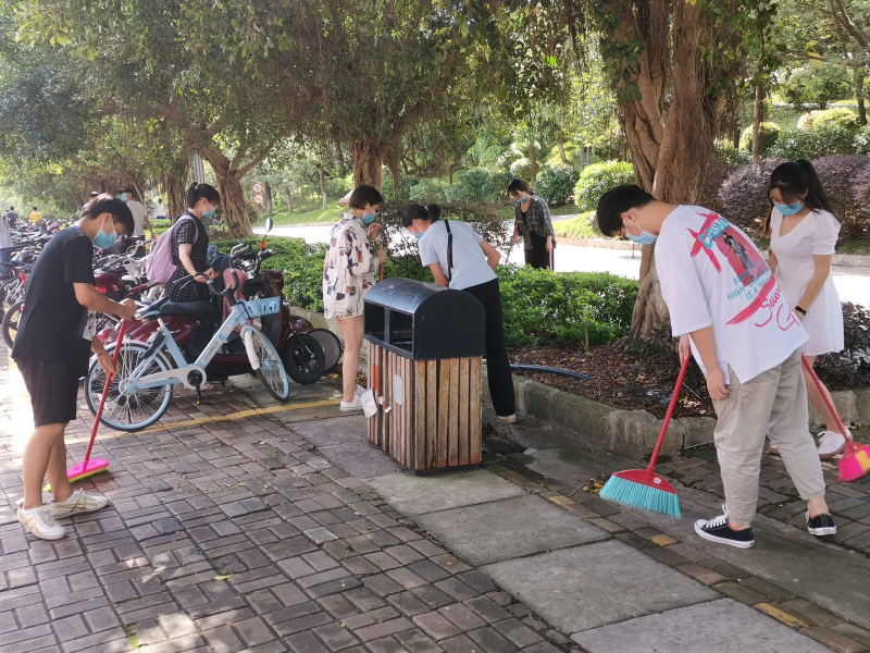 参加活动的人员们在8栋楼下集合等待组织人员的安排。各部门在各部长的带领下,迅速到指定区域内进行打扫。各部门人员清扫过程中积极清理垃圾、枯树叶、塑料袋等,不怕脏,不喊累,相互配合。他们用自己的实际行动为学校增添一份清新,一抹明亮,他们热情洋溢的进行清扫,展现了阳光向上,精神饱满的良好状态,并以合影留念结束了本次的清扫活动。