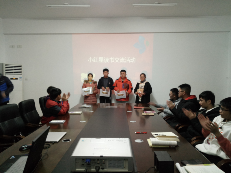 1月3日晚,我系易班学生工作站在玉成楼208会议室开展了第二次 “小红星读书心得交流“活动。参加“小红星读书活动”的15名同学、我系易班学生工作站全体工作人员和李梅清老师参加本次活动。