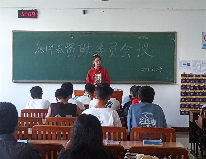 2021年10月27日,我系学生事务管理中心助学部在4308教室召开了2021年秋季学期资助委员会议。参加本次会议的人员有指导老师陈子依、21级全体资助委员、21级班助、21级助学部全体试用干事,会议由助学部部长吴云艳主持。