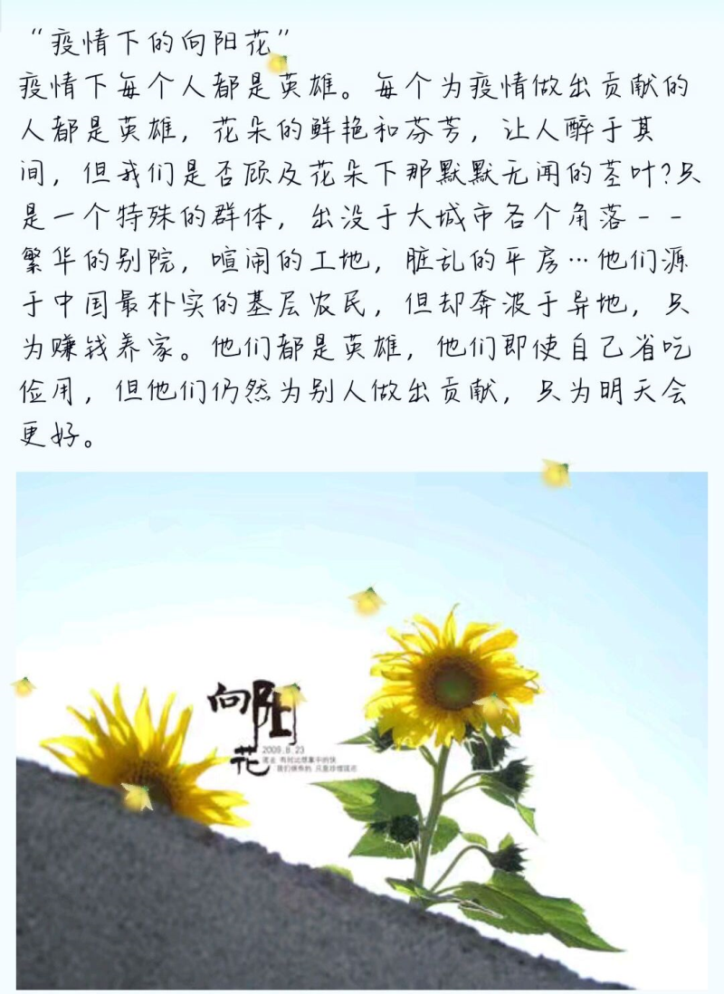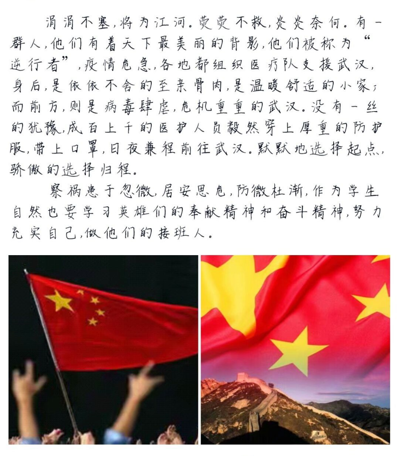 其次,在书签设计比赛中各班参赛同学积极参与,用文字抒发他们对抗击疫情英雄的赞美,字里行间都表达了国家为保护人民的生命安全做出巨大努力的敬佩之情,,在众多的作品中也是挑选出了一批“优秀之星”,他们分别是:应电19-2班的裴丽萍,建智19-1班的桂新纪,通信17本1班的叶春。