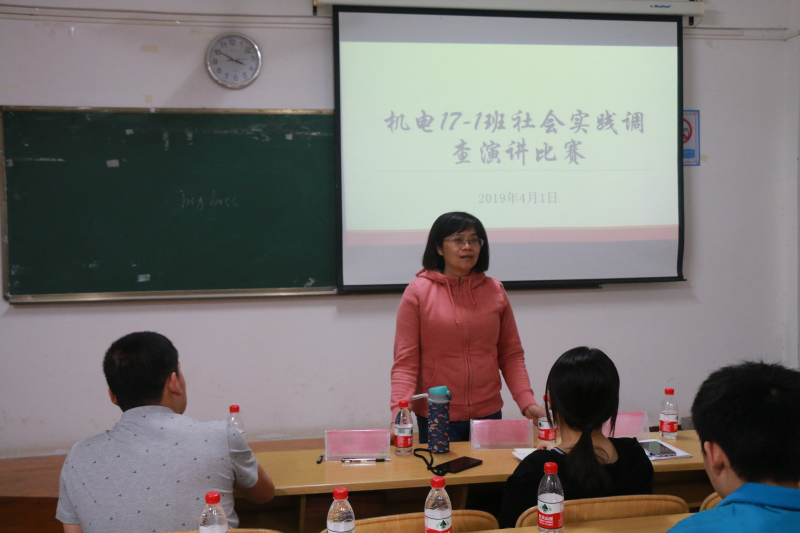 为进一步加强大学生社会实践能力,丰富实践内容,开拓学生探索社会所存在的问题以及提出解决问题的方案。我系机电17-1班于4月1日晚,在6204举行了社会实践调查报告演讲比赛。此次比赛有幸邀请到了我系党总支副书记兼学工组组长罗勇老师,辅导员刘恒老师、张明老师,我班班主任陆生鲜老师担任评委。同时还邀请到了17级部分班委以及我班同学到现场观看本次比赛。