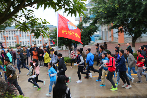 环校园健康跑在学校党委副书记梁冬松一声令下,以学校教师方队的为首的各系方块队近千人开始环校主干道跑一圈,这有助于提高师生体质健康水平,推动广大师生参与阳光体育运动的开展,掀起体育锻炼热潮。