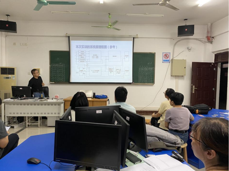 首先由韦义宏老师部署教研室新学期教学工作,重点对2023年春季教学材料归档和2023年秋季学期开学材料可能存在的问题做了陈述。接着以黄能健老师新上课课程《计算机网络与通信》和朱敦忠老师新上课课程《建筑公共安全系统》为例进行磨课和集体研讨,教研室其他成员作为学生认真听课。试讲结束后,教研室老师们针对试讲课程所存在的问题提出了很多有建设性的意见,包括课堂互动方式、信息化教学手段多样化、课程思政点的合理切入等,并分享相关实际教学案例进行讨论。