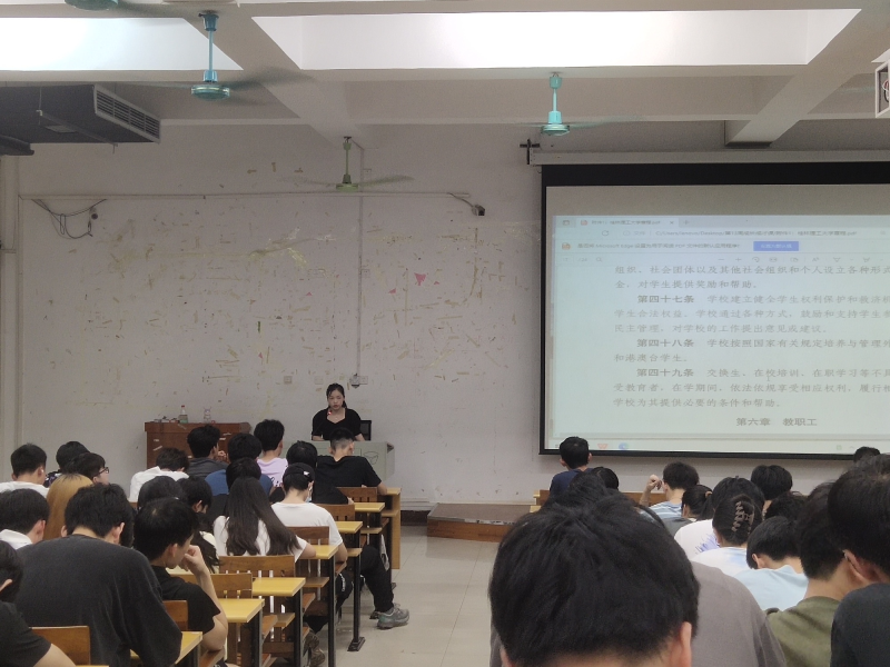 安全重于泰山,防范必于未然,辅导员们从交通安全、消防安全、食品安全、防溺水、心理健康、校园欺凌以及防电信网络诈骗等方面做出重点讲解。提醒同学们强化安全意识,远离不安定因素,建议同学们要保持通信畅通,如遇到突发事件希望保持清醒的头脑,冷静应对,及时寻求老师的帮助。随后,辅导员们带领同学们学习了《桂林理工大学章程》。