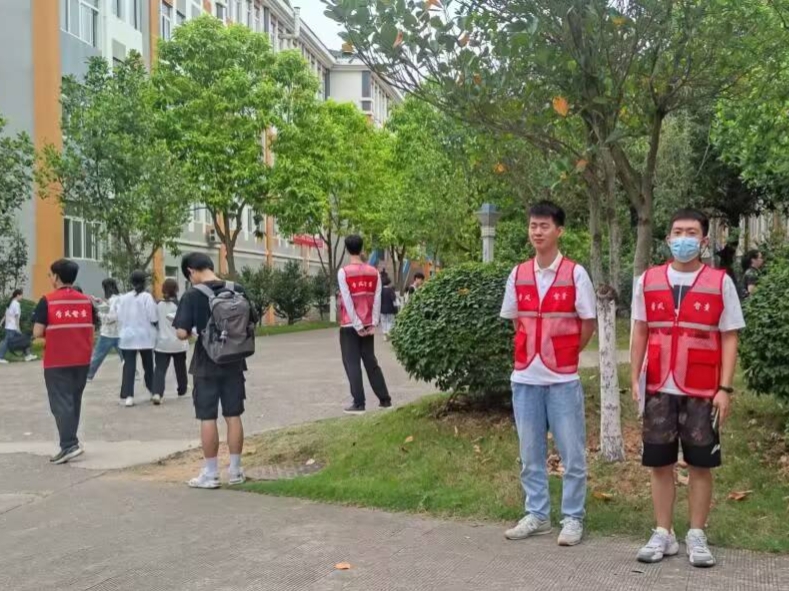 学生党员在宿舍楼下站岗