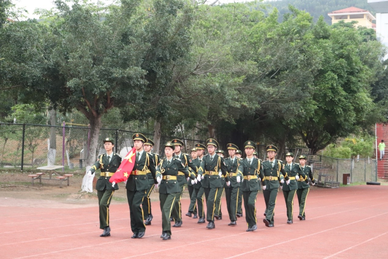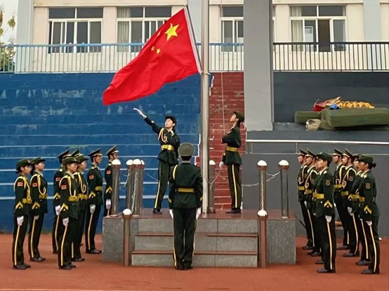 活动伊始,国旗护卫队迈着铿锵有力、整齐划一的步伐护送国旗走到升旗台前;伴随着激昂的《义勇军进行曲》响起,鲜艳的五星红旗缓缓升起,全体师生面向国旗行注目礼。