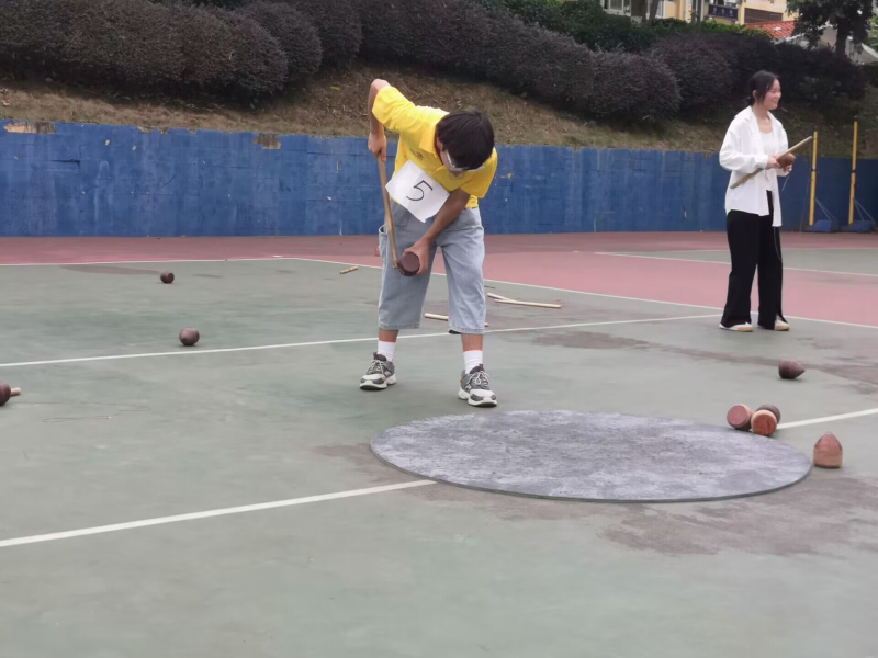 4月18日上午,陀螺比赛在篮球场顺利举行。