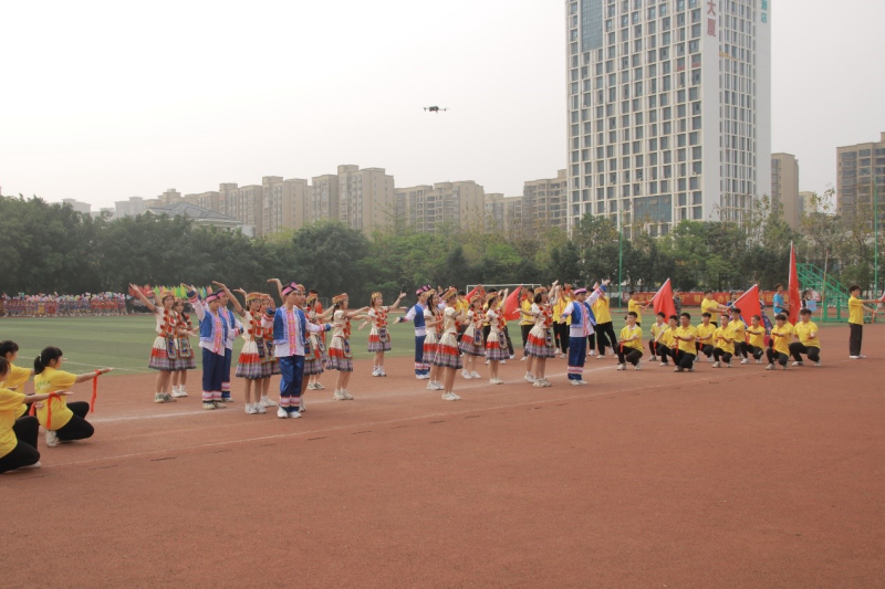 伴随着欢快的运动员进行曲,我系表演方块队身着五彩缤纷的民族服装,迈着铿锵有力的步伐、面带微笑走到主席台前,他们以斗志昂扬、朝气蓬勃的精神状态,为我们带来了一场传统的民族表演视觉盛宴,显示出我系学子的朝气和热情。
