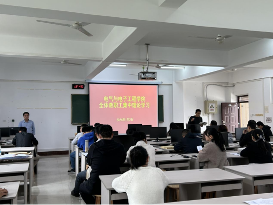 2025年1月2日,我院在4402教室召开全体教职工集中理论学习会。我院领导班子及全体教职工参加会议。会议由学院党委书记黄薇薇主持。