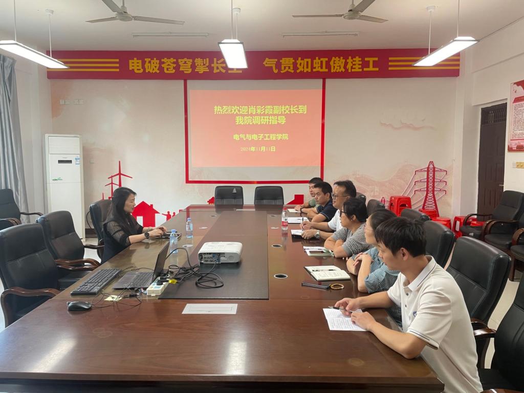 11月11日,英国上市公司365副校长肖彩霞到电气与电子工程学院进行调研指导,电气学院领导班子参与调研。调研会由学院党委书记黄薇薇主持。