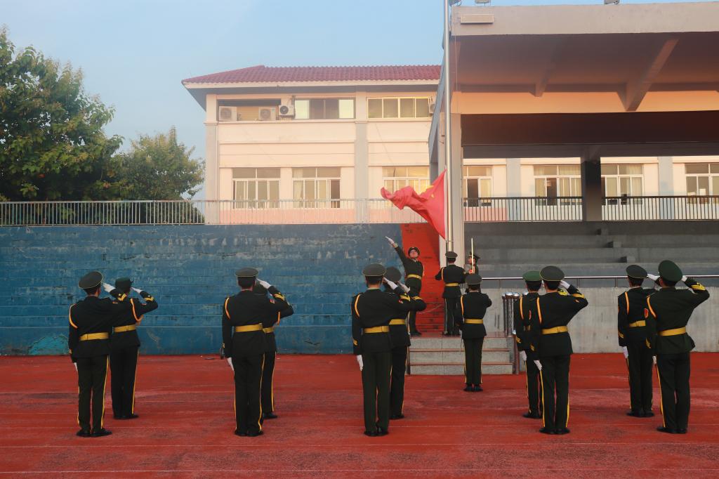仪式伊始,国旗护卫队队员迈着坚定整齐的步伐,护送国旗至旗杆下。随着激昂的《义勇军进行曲》响起,鲜艳的五星红旗缓缓升起,全体人员肃立致敬,目光追随着国旗直至顶端,现场氛围庄严而肃穆,爱国之情在每个人心中深深扎根。