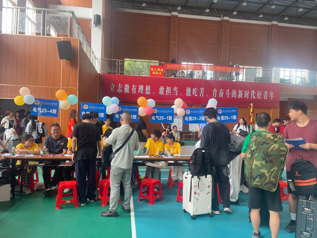 9月9日,电气与电子工程学院2025级新生怀揣梦想与期待如约而至。早上7:30的迎新点已是一边繁忙温暖的景象,志愿者们早已准备妥当,迎接新同学们的到来。现场按功能划分为身份核验、信息登记、物资发放以及宿舍入住四个职能组,流程清晰,衔接紧密,高效并有条不紊的进行迎新工作。工作人员悉心解答同学们的疑问。迎新老师在场处理了各类突发状况,保障了迎新工作的稳定运行。在校园内,志愿者协助新同学们搬运行李、为新生引导讲解。整个校园沉浸在一边暖意融融、秩序井然的迎新模式中。