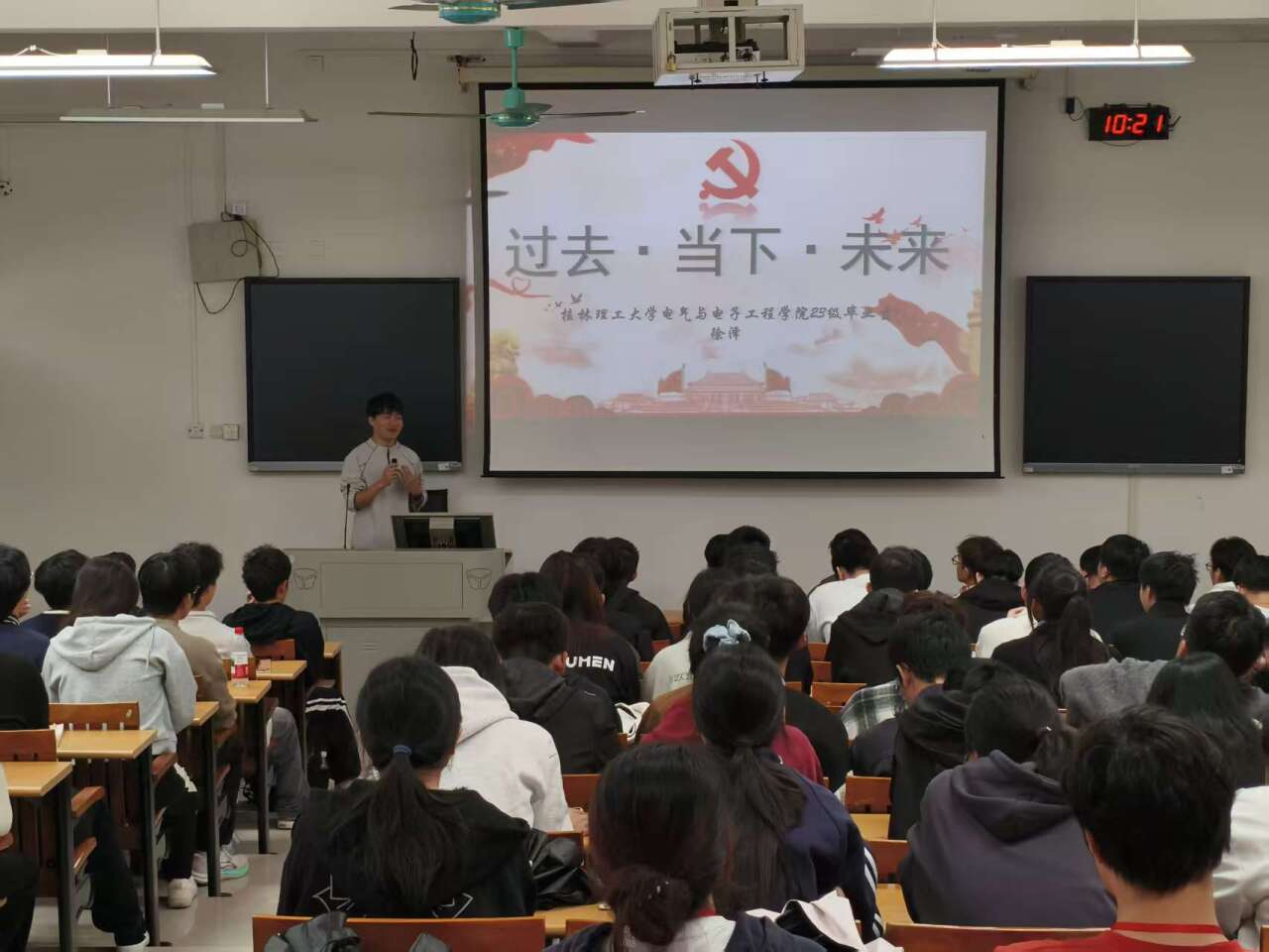 本次分享会特邀2023届自治区优秀毕业生徐泽校友重返母校,倾情分享其个人成长历程与升学就业经验。他凭借不懈努力,从专科,保送本科,最后成功考取桂林理工大学马克思主义学院思想政治专业研究生,实现了就业择业规划路上的成功实践。