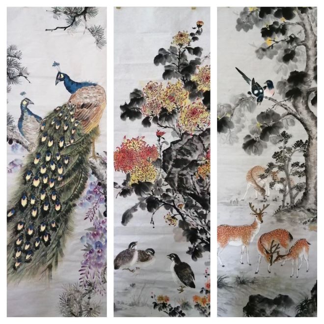 《和谐幸福》《安居图》《和谐家园》绘画作品展示