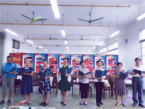 游园活动前,退休教师们齐唱《我和我的祖国》,献礼祖国70华诞。