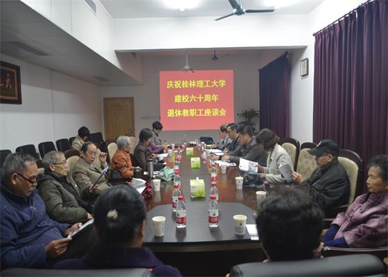 为庆祝桂林理工大学建校60周年,11月10日上午,分校在空港校区行政楼417会议室举行了退休教职工座谈会。分校校长冯兵、党委副书记梁冬松、副校长梁锦叶出席座谈会。分校退休职工代表参加。
