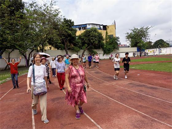 退休教职工积极踊跃参与,健步走过程中,大家精神抖擞、意气风发,迈着稳健的步伐绕着田径环道,一路欢声笑语,交谈甚欢。