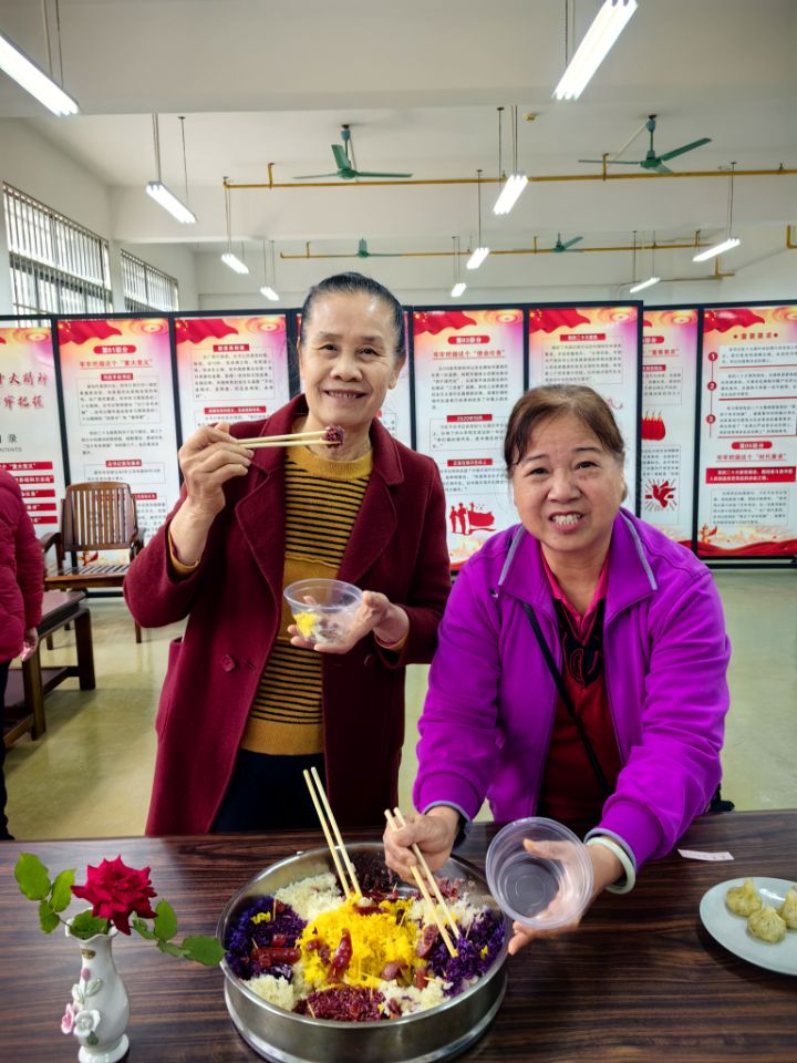 参加活动的退休女教职工充分发挥各自的厨艺,提前准备了五彩缤纷的菜品参加竞赛,别出心裁的特色五彩糯米饭、艾叶粑粑;有香软馥郁的豆面汤圆、烧麦;色味俱佳的银耳莲子羹、香菇酿等,一道道色香味美的菜肴、面点、甜品,勾起人的味蕾和食欲,为在场的所有人展现了一场饕餮盛宴,职工之家弥漫着美食香味和退休女教职工的欢声笑语。