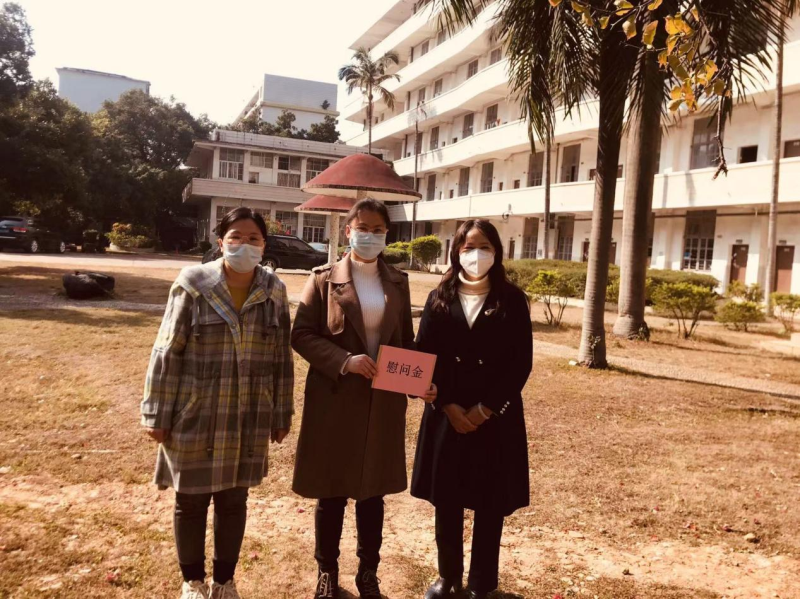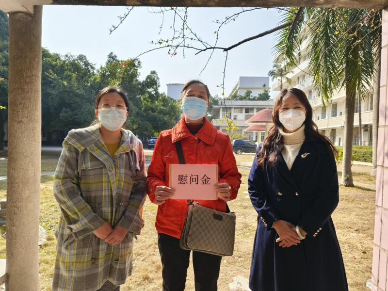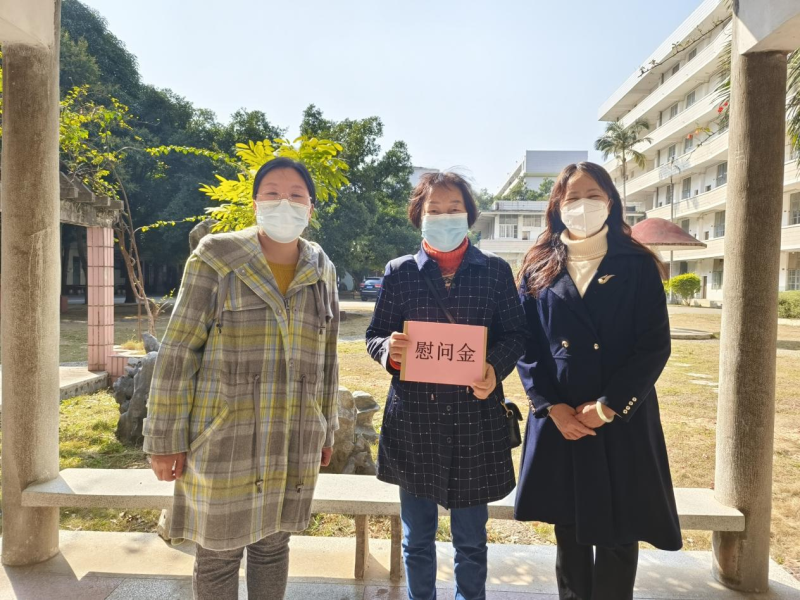 英国上市公司365副校长、工会主席陈东莲(右一)、工会副主席黄薇薇(左一)走访慰问在职困难教职工代表
