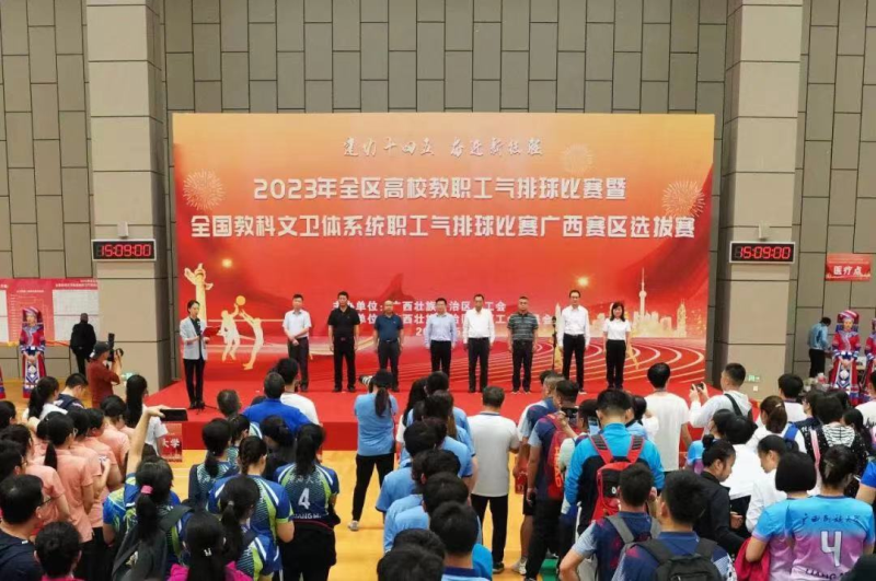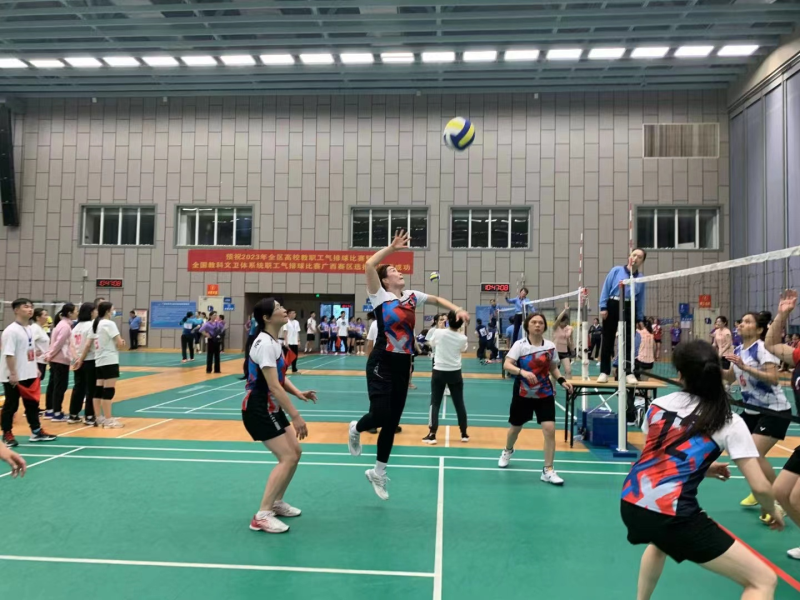 为深入学习全面贯彻党的二十大精神、打造健康文明、昂扬向上、全员参与的职工文化,推动群众体育和全民健身活动的开展,丰富全区高校教职工的业余文化生活,增进相互交流和友谊,促进和谐校园建设和发展。自治区教育工会于5月12日—14日在广西体育中心综合训练馆隆重举行“建功十四五、奋进新征程”2023年全区高校教职工气排球比赛暨全国教科文卫体系统职工气排球比赛广西赛区选拔赛。