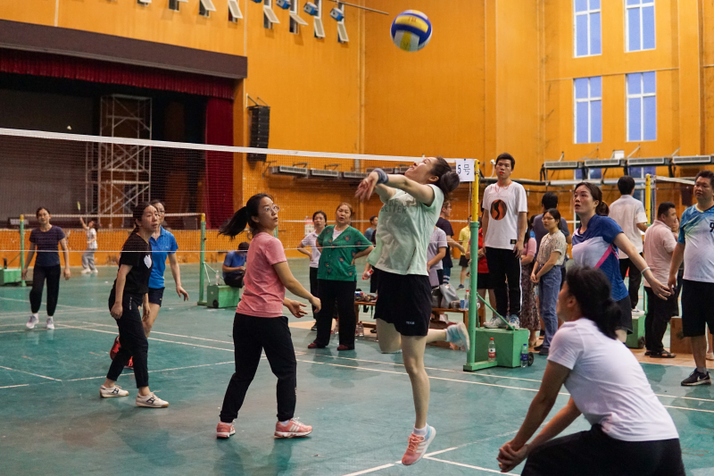 此次比赛分两个阶段进行,总计76场比赛,共有来自12个分工会的24支队伍逾200多名教职工参赛,整个比赛精彩纷呈,高潮迭起。赛场上,队员们配合默契、团结协作,传球、垫球、扣球,不断组织着进攻,迅猛的发球、巧妙地拦网、精彩地扣杀,小小的排球在运动员的手中来回穿梭,大家你拼我搏,互不相让。赛场外,各队教练员全神贯注紧盯比赛,随时准备战术调整。啦啦队员不甘示弱助威声、加油声此起彼伏,振奋士气。场边裁判员公正执裁,认真记录,为比赛提供强有力的技术支持。