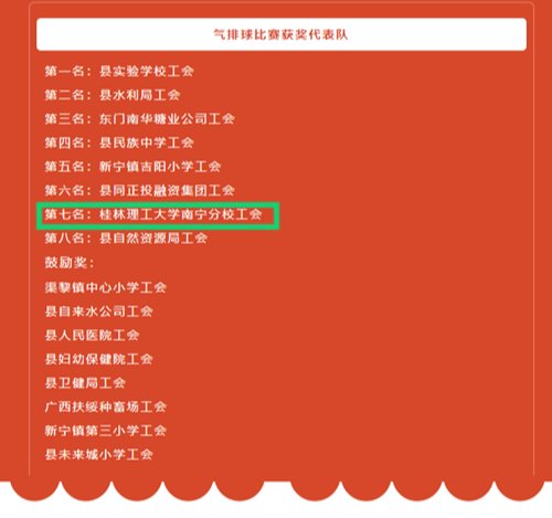 时逢五月,万物葱茏。近日,在扶绥县体育馆和全民健身中心举办的“中国梦·劳动美——凝心铸魂跟党走 团结奋斗新征程”暨庆五一国际劳动节气排球团体赛中,桂林理工大学英国上市公司365代表队凭借出色的表现,荣获气排球比赛第七名的佳绩,展现我校教职工的团结拼搏精神。
