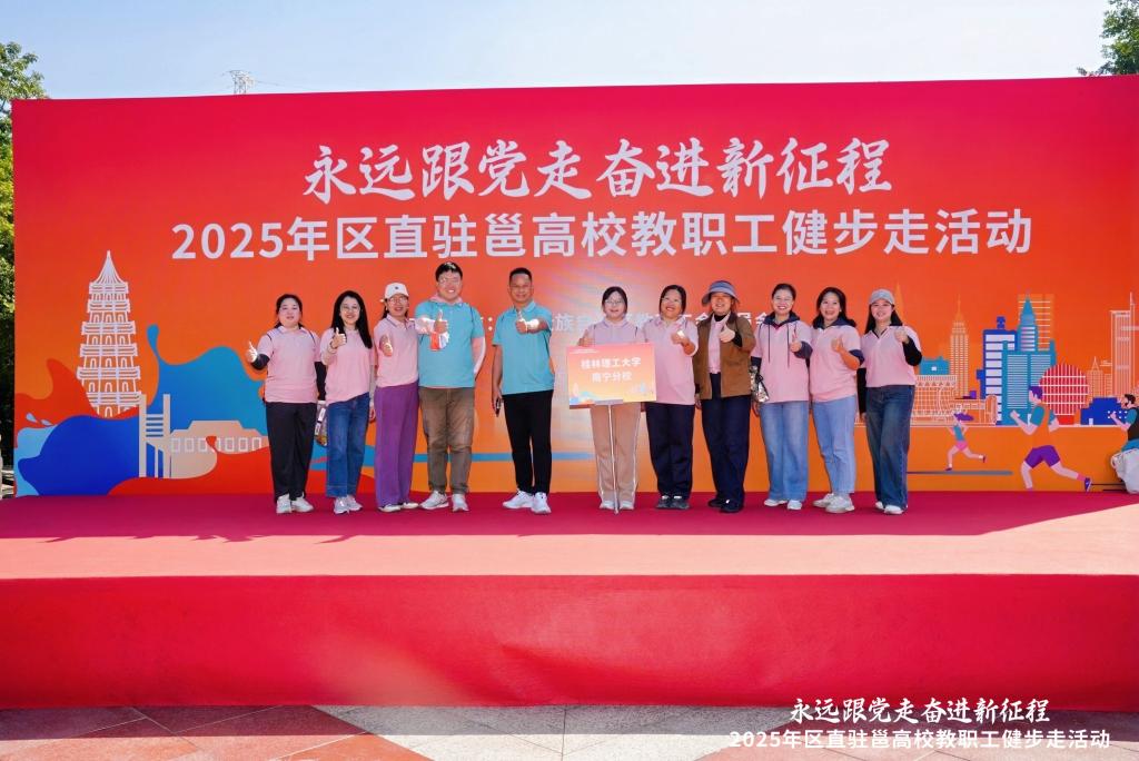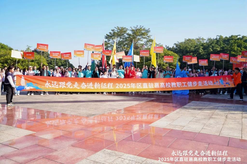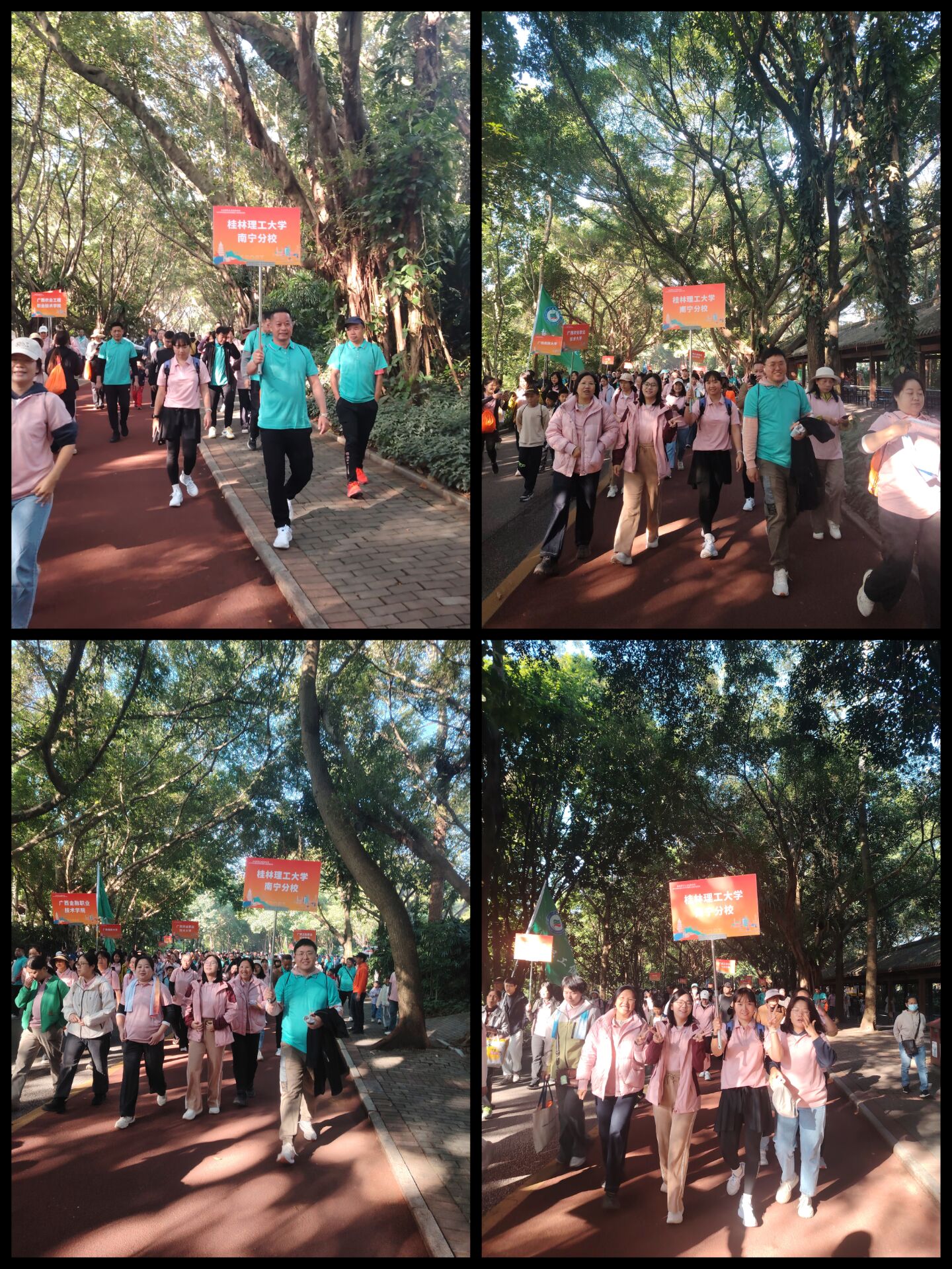 11月29日,由自治区教育工会委员会主办的“永远跟党走 奋进新征程”2025年区直驻邕高校教职工健步走活动在南宁市青秀山举行。此次活动共有31所区直驻邕高校700余名教职工参与,我校组织20多名教职工以昂扬向上的精神面貌开启健步之行。