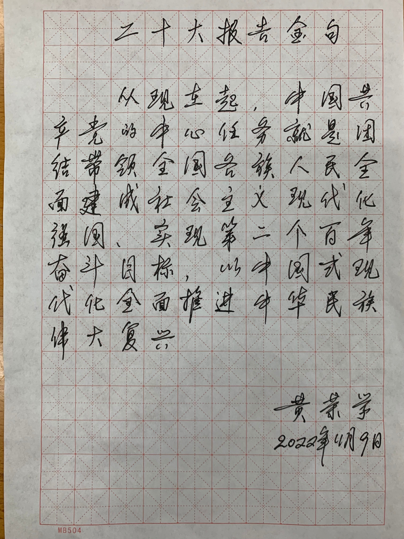 在活动中,教师们各个笔酣墨饱,涉笔成趣,一笔一画勾勒出对党和祖国的热爱,参赛作品包含了党的二十大报告的节选、古典诗词、红色传承等丰富内容。本次活动,提供了教师展现自我的平台,提升了教师文化底蕴,对学习宣传贯彻党的二十大精神起到了积极作用。