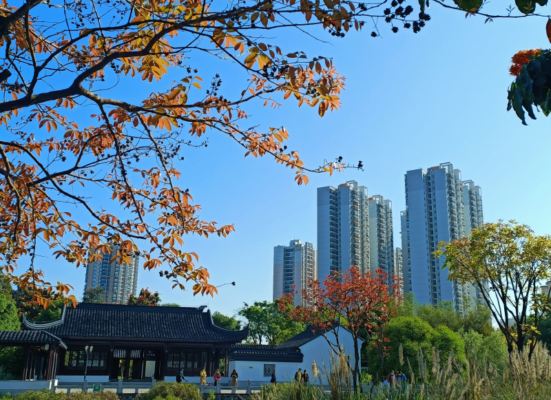 还有这幅《绿城之春》,蓝天、美景、可爱的人儿以及现代建筑与传统建筑的契合,凸显春天一派祥和的气息。