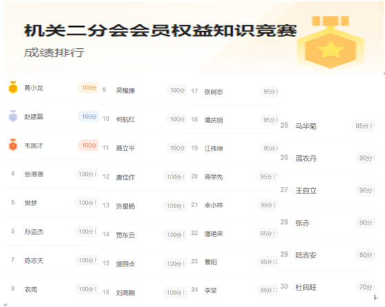 为进一步普及工会的基本理论及基础知识和工会工作相关法律法规,加强教职工的深入学习,加深教职工对工会工作的了解,推动工会工作创新发展,进一步增强和提升工会组织和工会工作的影响力,切实营造遵法守法的良好学习氛围,机关二分会组织了全员线上答题活动。让教职工在考试中对工会权益加以印证,使教职工留下来深刻的印象,使工会的基本理论及基础知识和工会工作相关法律法规的全员学习画上一个圆满的句号。