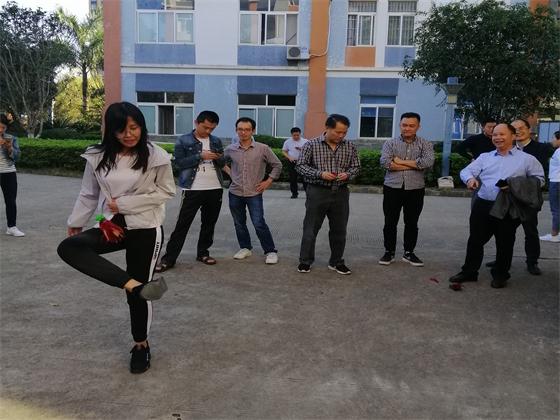 为激发教职工锻炼身体的热情,丰富教职工文化娱乐生活,增进合作与交流,增强集体荣誉感和凝聚力,全体计算机应用系教师于10月29日上午在2号教学楼前举行了踢毽子比赛。