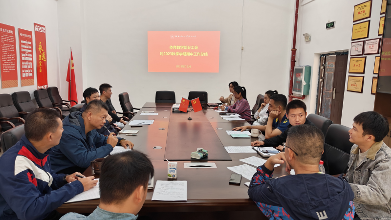 2023年11月22日上午,在体育馆会议室召开了体育教学部分工会期中总结会议,会议由分工会主席黄远旺主持,全体体育教学部教师参与了会议。