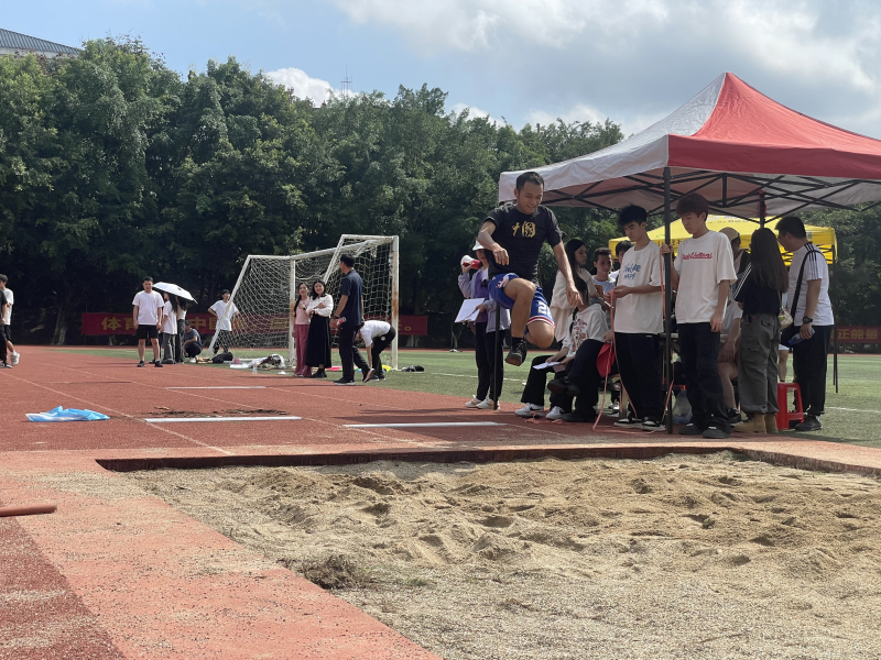 助跑、起跳、空中动作(腾空)、落地,整套流线型动作反映出各位教师们在背后的积极参练,依靠助跑的规范姿势,老师们得以在空中保持身体平衡,重心稳稳落地。各位教师通过跳远运动项目为学生们展现了跳跃的姿态,展现出跳跃人生的精神!