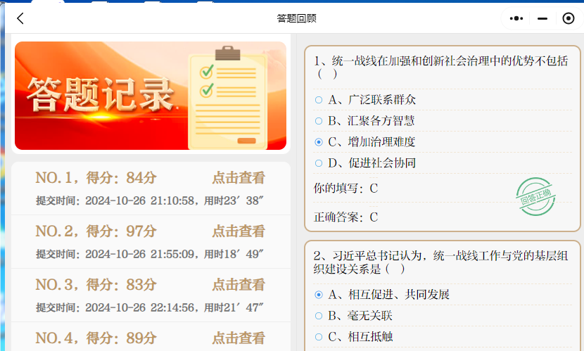 知识竞赛活动以线上答题方式展开,时间从2024年10月25日到27日,共3天。内容涵盖统一战线理论、政策及新中国史等内容。活动中,基础学科部分工会教职工们认真学习相关统战理论知识,积极参与,奋勇争先。