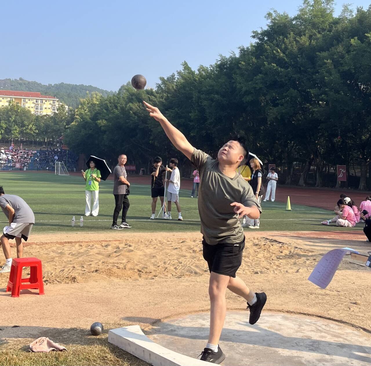 运动会期间,教师们激情投入,挥汗如雨,矫健的身姿尽显运动风采。在径赛项目中,随着发令枪响,红色跑道上,他们如闪电般迸发力量、驰骋追风;在田赛项目中,他们轻盈的跳跃,力量投掷在跳远和铅球的竞赛场上留下精彩的抛物线。其中,我院教职工黄剑波老师凭借出色的表现,获得了男子100米第2名的好成绩,为学院赢得了荣誉,增添了光彩。
