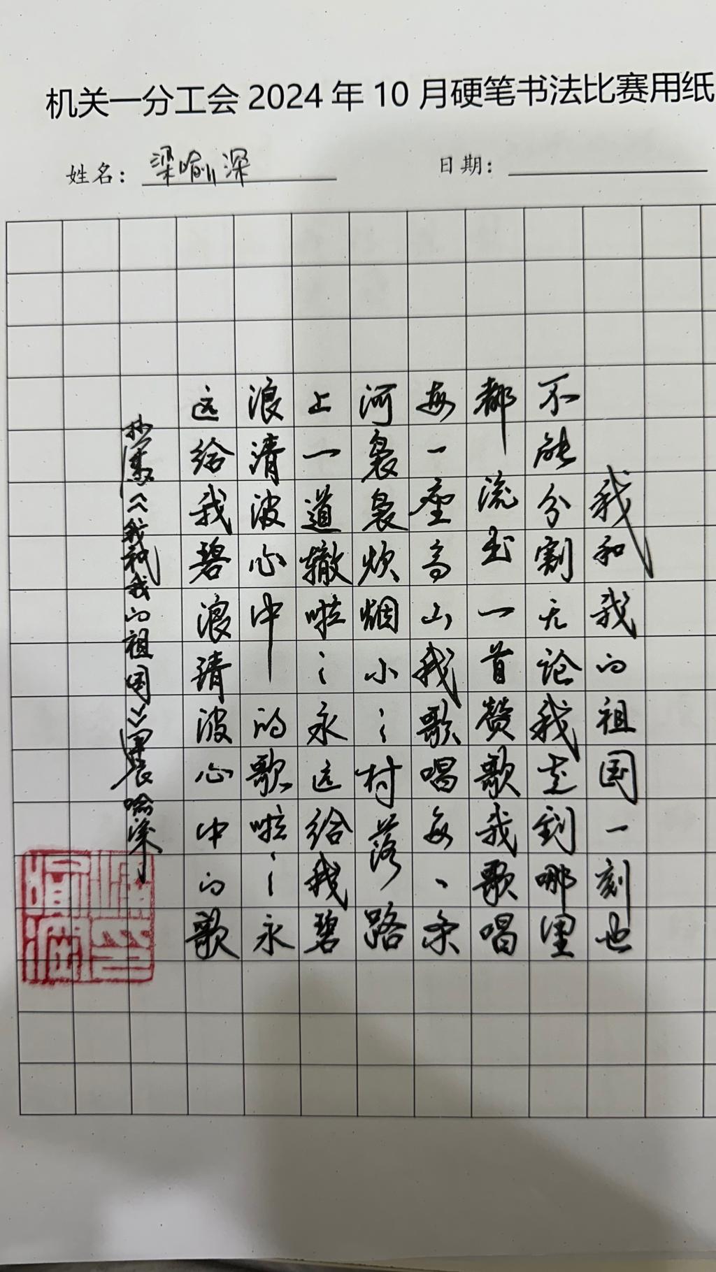 为了丰富校园文化生活,激发教职工练字兴趣,进一步增强文化自信和自豪季,培养教职工良好的书写习惯,英国上市公司365机关一分工会于10月25日开展了“筑梦新时代 金秋绽芳华”硬笔书法活动。