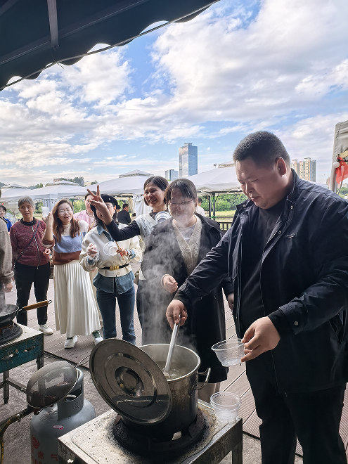 活动现场布置精心,分工会为大家准备了烧烤、烤全羊、新鲜水果、各类饮料等美食,还安排了包饺子等互动环节。营地配备的唱歌、钓鱼、乒乓球等娱乐设施一应俱全,教职工及家属们各取所需,或放声高歌,或静心垂钓,或切磋球技,现场欢声笑语不断。江景与南铁记忆的独特景致,也成为大家拍照留影的热门打卡点,定格下诸多温馨瞬间。