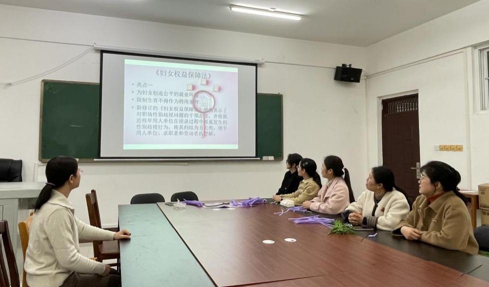 机械与控制工程学院分工会精心策划并组织了一场主题为“情系女职工”的专项普法宣传活动,活动于3月12日于3205会议室举行,由蒙童慧书记主持,学院女教师参加。