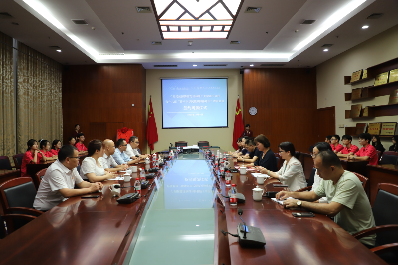 广西民族博物馆副馆长黄诗莉为揭牌仪式致辞。她指出,广西民族博物馆充分发挥作为全国民族团结进步教育基地和全国中小学生研学实践教育基地的作用,致力保护和传承好民族文化遗产;深化馆校合作模式,与各大高校在文创研发、产业研究、社会教育与实践等领域开展广泛合作,不断增强青年一代的民族文化自信心和自豪感。她希望,通过馆校共建项目,双方相互整合现有资源,加强多元合作,推动思政教育、专业建设、科技创新、人才培养、文化传承、校企合作等方面共同发力,深度融合发展,实现产学共赢,打造铸魂育人共同体。
