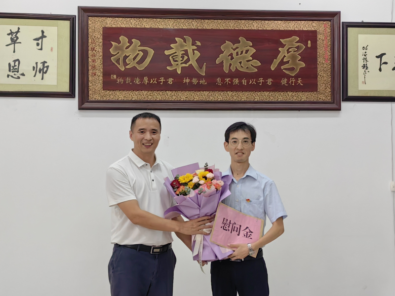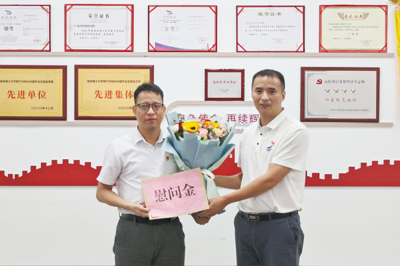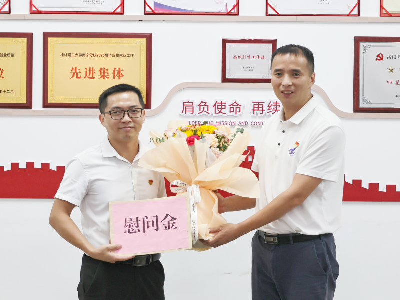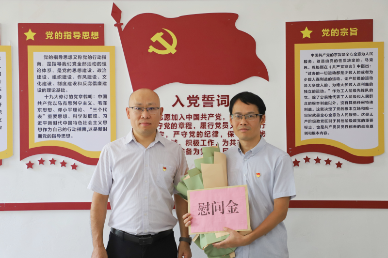 英国上市公司365党委副书记唐承泽(右一)慰问辅导员李杰