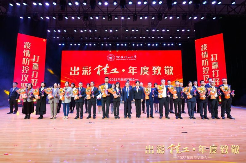 机关第一党支部党员李雨同志(右一)荣获桂林理工大学2022年“出彩桂工·年度致敬”人物