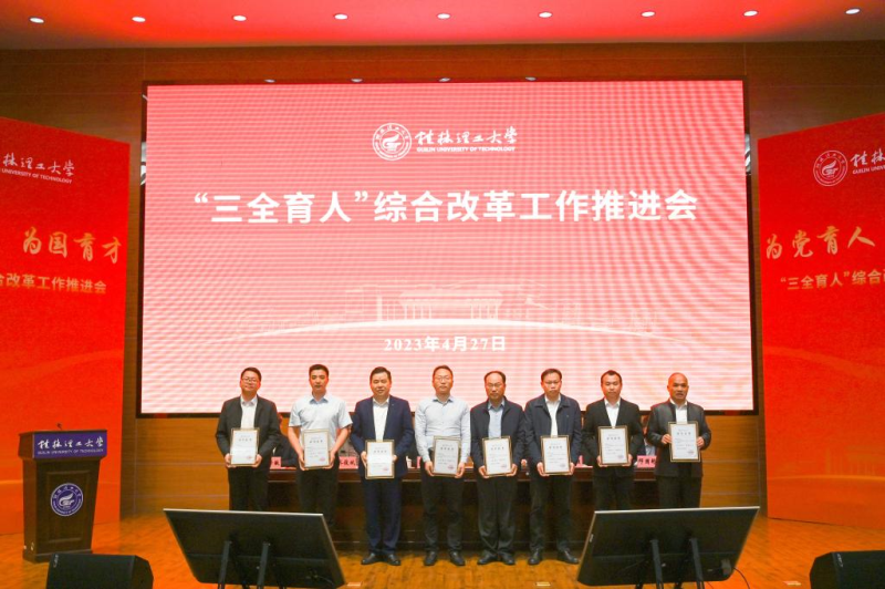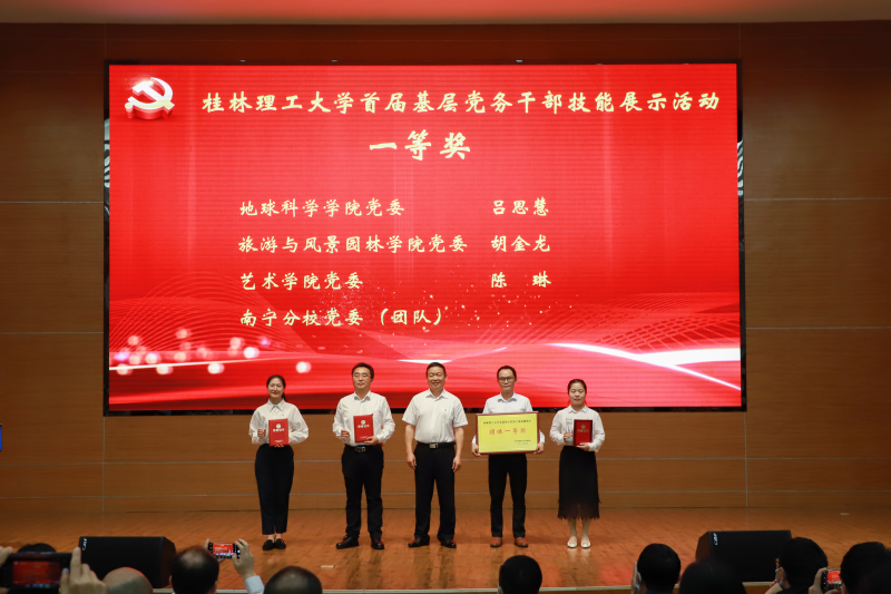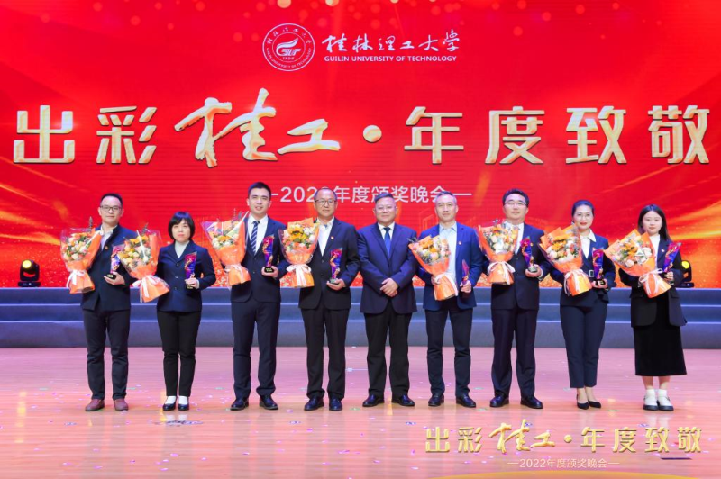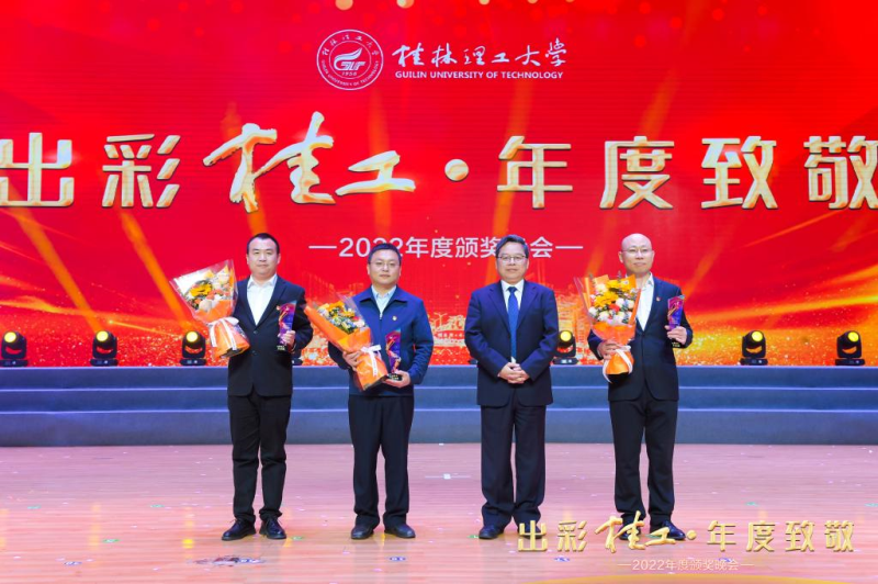 机关第一党支部党员李培良同志(左一)荣获桂林理工大学2022年“出彩桂工·年度致敬”人物