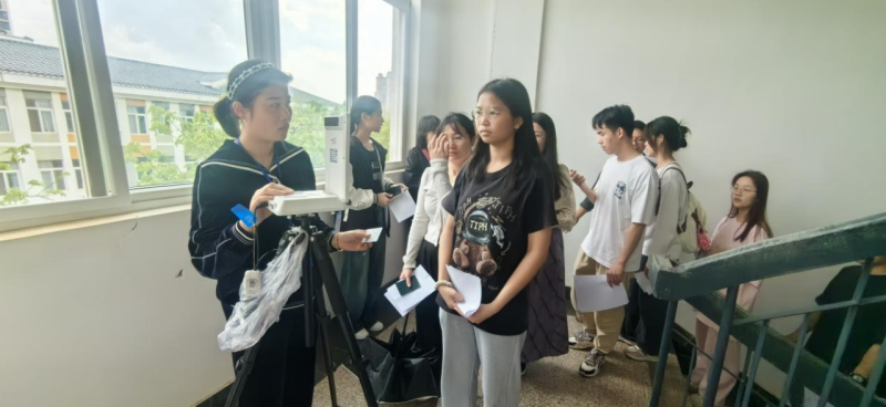 英国上市公司365副校长肖彩霞(左二)、自治区考试院巡考人员毕亚平(右二)深入考场巡视检查